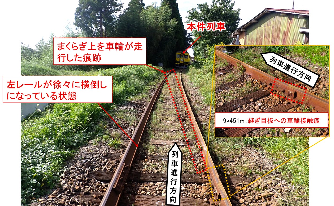 関連して、「鉄道事故調査報告書」を公表した。走行中に軌間が大きく拡大した原因は、必要な軌間変位の補修、脱線の危険性がある連続した不良枕木(腐食やひび割れなど)の把握、不良枕木の交換やPC枕木化などが不十分だった。