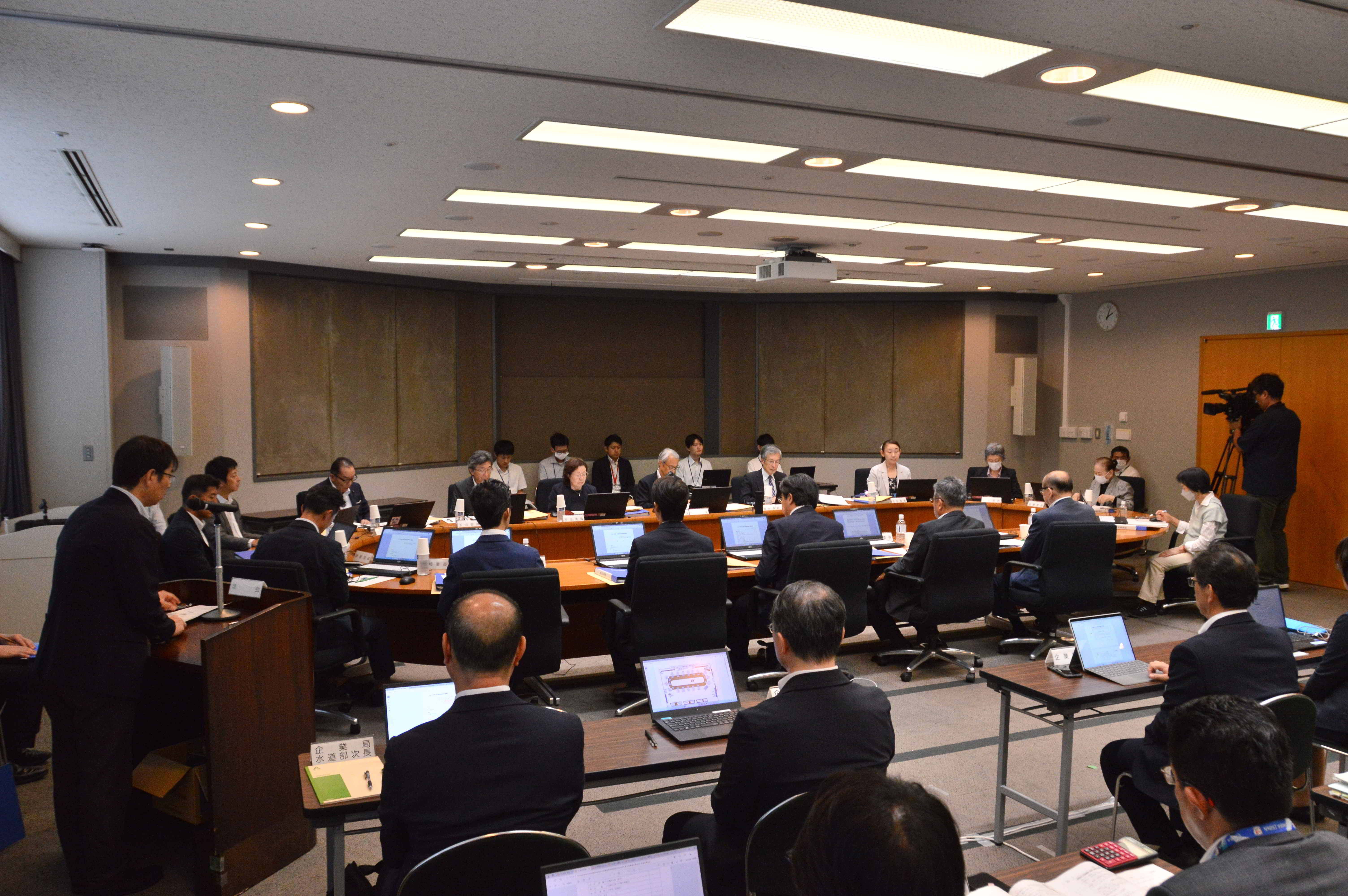今後の県営水道事業の料金水準と料金体系のあり方について話し合う県水道事業運営審議会の2025年度第3回が9日、県庁本庁舎5階大会議室で開かれた。これまでの議論を踏まえて取りまとめた答申案を議題として話し合い、全ての委員から賛同を得た。答申案では、県が提示した施設整備の進め方、料金引き上げ幅、料金体系案などについて「妥当」と判断。一方で、料金改定直後から切れ目無く財政収支見通しや料金水準を検証し、利用者に理解を求めていくことが必要と指摘。加えて、地下水利用に係る新たな施策などについて検討が求められるとした。