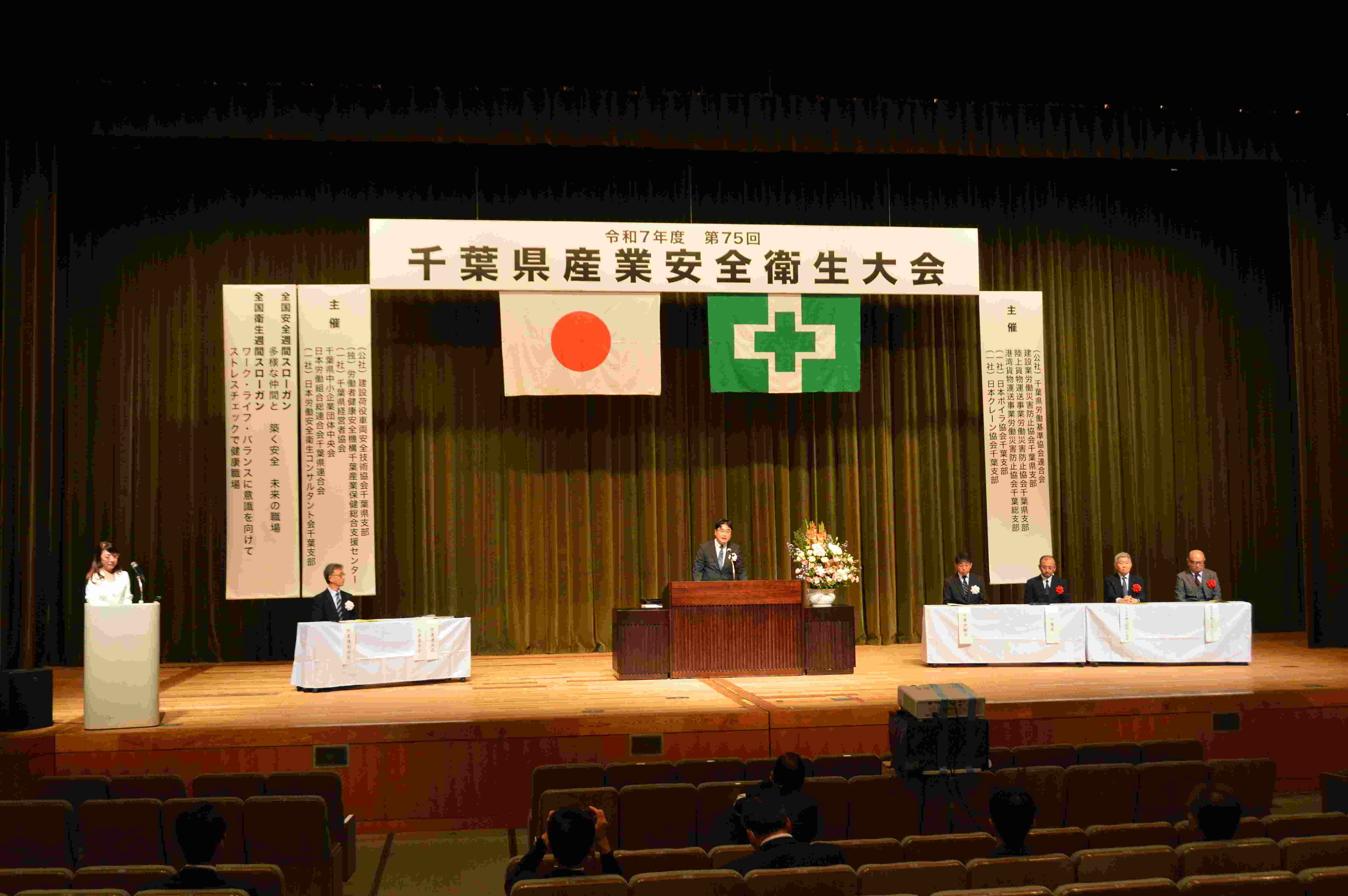 大会の主催は、千葉県労働基準協会連合会、建設荷役車両安全技術協会千葉県支部、建設業労働災害防止協会千葉県支部、労働者健康安全機構千葉産業保健総合支援センター、陸上貨物運送事業労働災害防止協会千葉県支部、千葉県経営者協会、港湾貨物運送事業労働災害防止協会千葉総支部、千葉県中小企業団体中央会、日本ボイラ協会千葉支部、日本労働組合総連合会千葉県連合会、日本クレーン協会千葉支部、日本労働安全衛生コンサルタント会千葉支部。