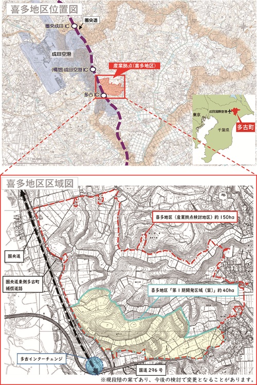 多古町は1日、「多古町喜多地区『第1期開発区域』における産業拠点創出に向けた事業化検討パートナー」を選定する公募型プロポーザルを公告した。成田国際空港の機能強化や首都圏中央連絡自動車道の開通時期の公表など町を取り巻く環境が大きく変化していく中、2020年度に改訂した都市計画マスタープランで本エリアを「産業拠点」と位置付けた上で、23~24年度の産業拠点開発計画等検討業務を経て本エリア内約40haの区域を「第1期開発区域(案)」とした。25年10月には、多古町喜多地区第1期開発区域まちづくり協議会を設立。パートナーは、町および協議会とともに、産業拠点の創出に向けて実現性や事業手法を検討する。